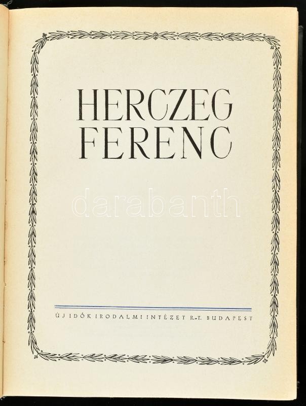 Kornis Gyula: Herczeg Ferenc Budapest, 1943, Új Idők Irodalmi Intézete R.-T. 370 p. + [1] p. + LXXXII t.: ill. Első kiadás. Herceg Ferenc. Szerkesztette: Kornis Gyula. Kiadói, sérült gerincű egészvászon kötésben