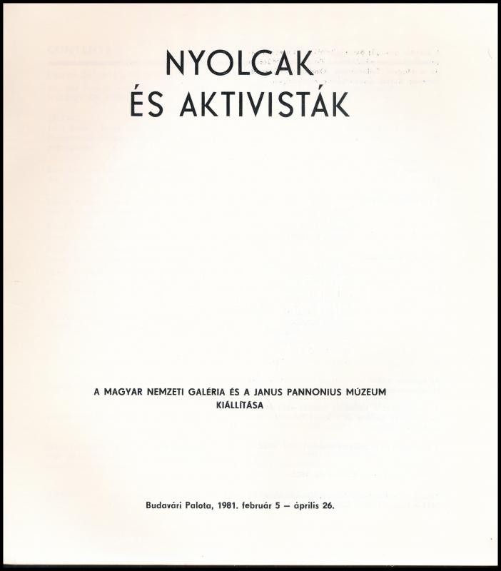 Nyolcak és aktivisták. Kiállítási katalógus. Szerk.: Éri Gyöngyi. Bp.-Pécs, 1981, Magyar Nemzeti Galéria-Janus Pannonius Múzeum. Fekete-fehér fotókkal. Magyar és angol nyelven. Kiadói papírkötés, jó állapotban.