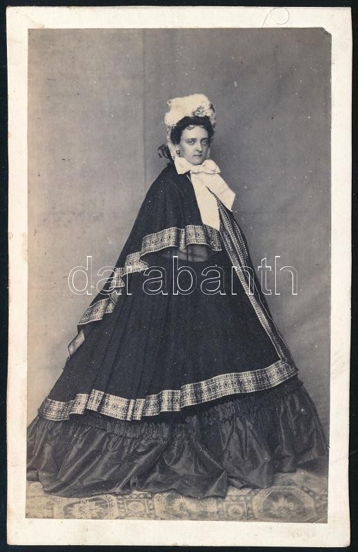 Beschreibung: 1867 Hunyadi Júlia grófnő (1831-1919), Mihailo Obrenović szerb fejedelem felesége, keméynhátú fotó Stojanovits műterméből, szép állapotban, 10×6 cm