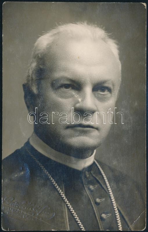 cca 1910-1920 Prohászka Ottokár (1858-1927) püspök, író, politikus, fotólap Goszleth és Fia budapesti műterméből, hidegpecséttel jelzett, sarkán törésnyom, 14×9 cm