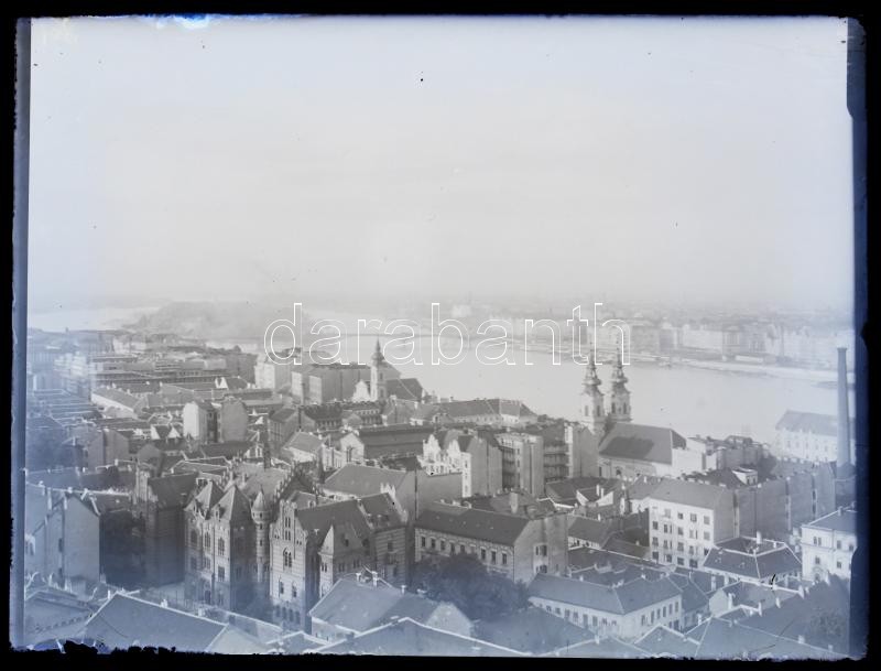 Beschreibung: cca 1930 Budapest, kilátás a budai oldalra, távolban a Margit hídra, üvegnegatív, 9×11,5 cm
