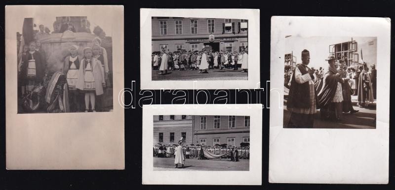 cca 1940 Vegyes fotók, Serédi Jusztinián körmeneten, lóvásár, Nagy-Magyarország-emlékmű, stb., 27 db fotó, közte kézzel színezett, 4,5×6,5 és 9,5×6,5 cm közötti méretekben