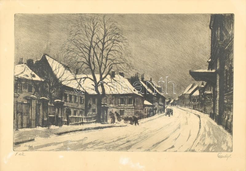 Élesdy István (1912-1987): Tél. Rézkarc, papír, jelzett, üvegezett sér... https://www.darabanth.com/de/405-Fernauktion/405.0/Gemalde-und-Grafiken/Gemalde-und-Grafiken~1/Elesdy-Istvan-1912-1987-Tel-Rezkarc-papir-jelzett-uvegezett-serult-keretben-29x49-cm~II2502572