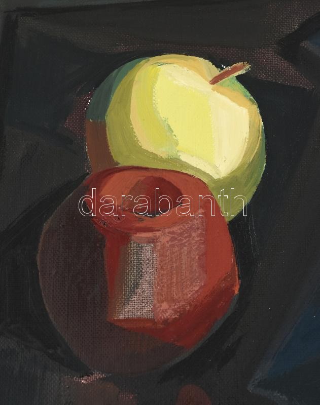Beschreibung: Fóth Ernő (1934-2009): Csendélet. Olaj, vászon. Jelzett. A hátoldalán autográf felirattal. Kissé sérült fa keretben. 50×70 cm