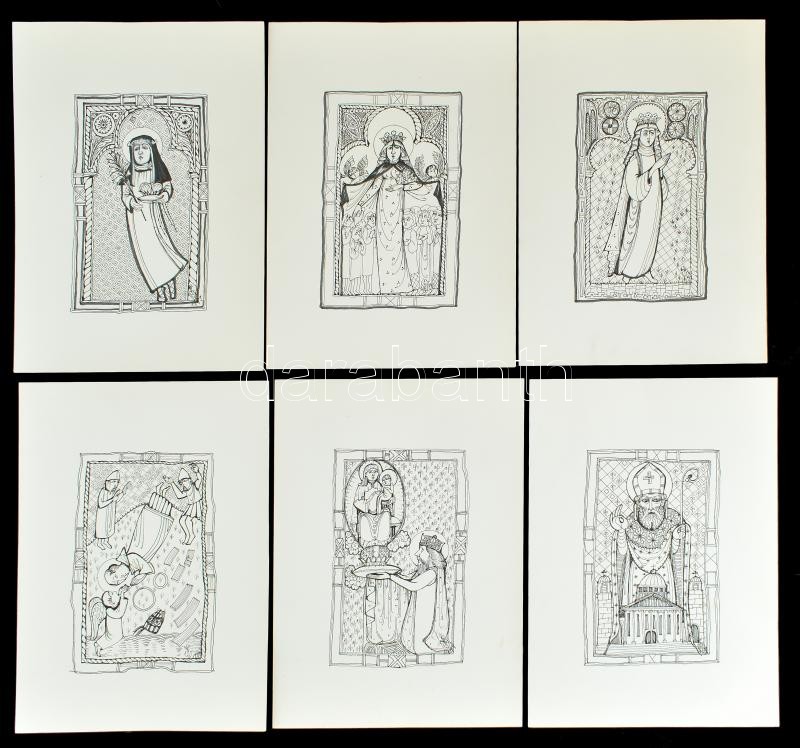 Beschreibung: Sinkó Veronika (1945-): Magyar szentek 12 db illusztráció, tus, vegyes technika. Jelzettek. 12x19 cm
