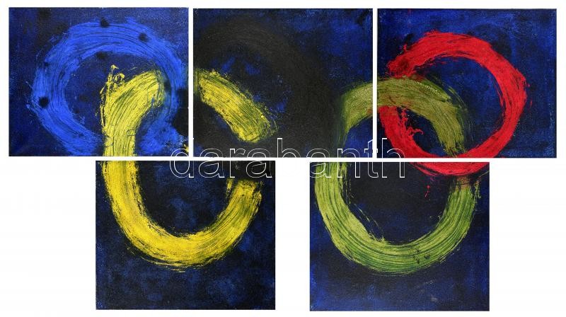 Beschreibung: 5 képből álló nagy méretű modern kompozíció. Azonosítatlan jelzéssel, olaj, vászon, minimális sérüléssel. Egyenként 55x45 cm