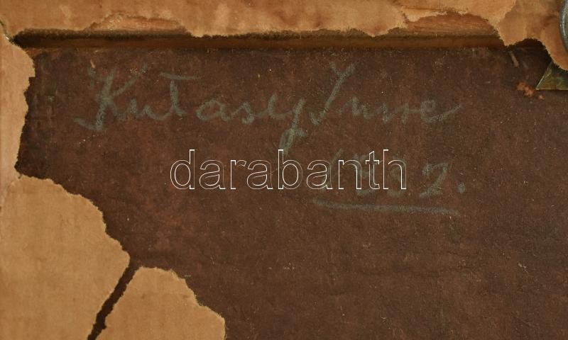 Beschreibung: Kutasy Imre jelzéssel: Csendélet porcelánnal és virágokkal. Olaj, karton. Dekoratív fa keretben, 18x13 cm