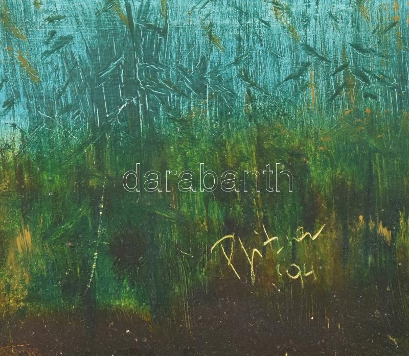 Beschreibung: Pfitzner '94 jelzéssel: Balatoni látkép a Tihanyi apátsággal. Olaj, farost, apró felületi sérülésekkel, 18x13 cm