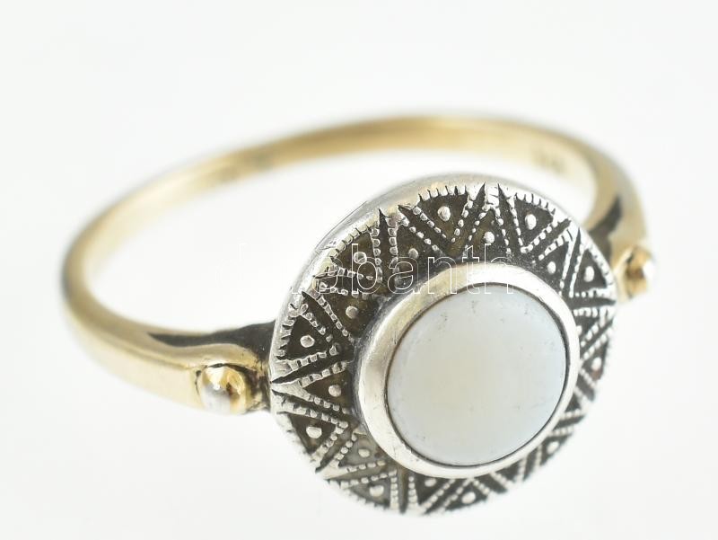 Beschreibung: Aranyozott ezüst(Ag) gyűrű, opálos díszítéssel, jelzett, méret: 52, bruttó: 2,41 g