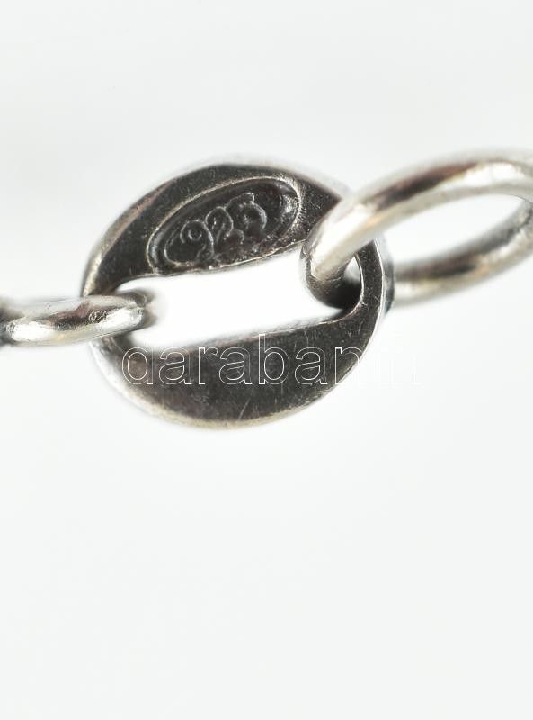 Beschreibung: Ezüst(Ag) kék gyönggyel díszített ékszerszett, nyaklánc, fülbevalópár, gyűrű, jelzett, bruttó: 11,21 g