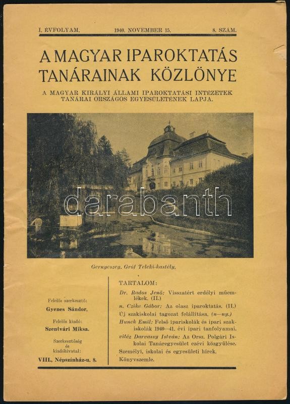 Beschreibung: 1940 Magyar Iparoktatás közlönye 1 évf 8. szám benne Visszatért műemlékek