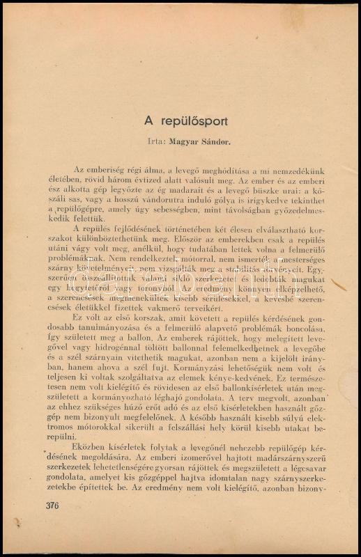 cca 1930 Magyar Sándor: A repülősport. Folyóiratban megjelent cikk 13p... https://www.darabanth.com/de/405-Fernauktion/405.0/Kunst-Dokumente-andere-Sammelgebiete/Drucksachen~32/cca-1930-Magyar-Sandor-A-repulosport-Folyoiratban-megjelent-cikk-13p-plus-Moller-Karoly-Repul~II2501699
