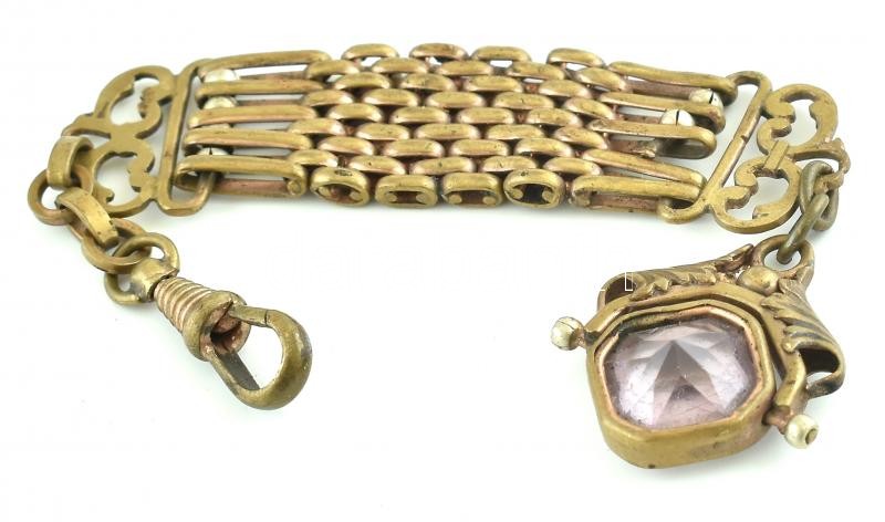 Réz óralánc, lila üveggel ékítve, h: 15cm https://www.darabanth.com/de/405-Fernauktion/405.0/Kunst-Dokumente-andere-Sammelgebiete/Flohmarkt~12/Rez-oralanc-lila-uveggel-ekitve-h-15cm~II2500091