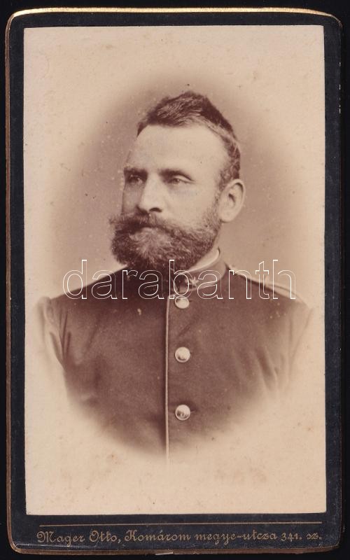 Beschreibung: cca 1880 Katonatiszt fotója komáromi műteremből vizitkártya