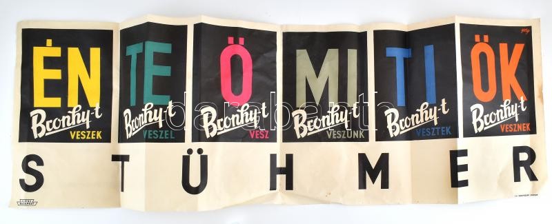 cca 1940 Bronhy édesség Stühmer plakát. Klösz nyomda. 31x94 cm Hajtva. https://www.darabanth.com/de/405-Fernauktion/405.0/Kunst-Dokumente-andere-Sammelgebiete/Plakat~33/cca-1940-Bronhy-edesseg-Stuhmer-plakat-Klosz-nyomda-31x94-cm-Hajtva~II2499330
