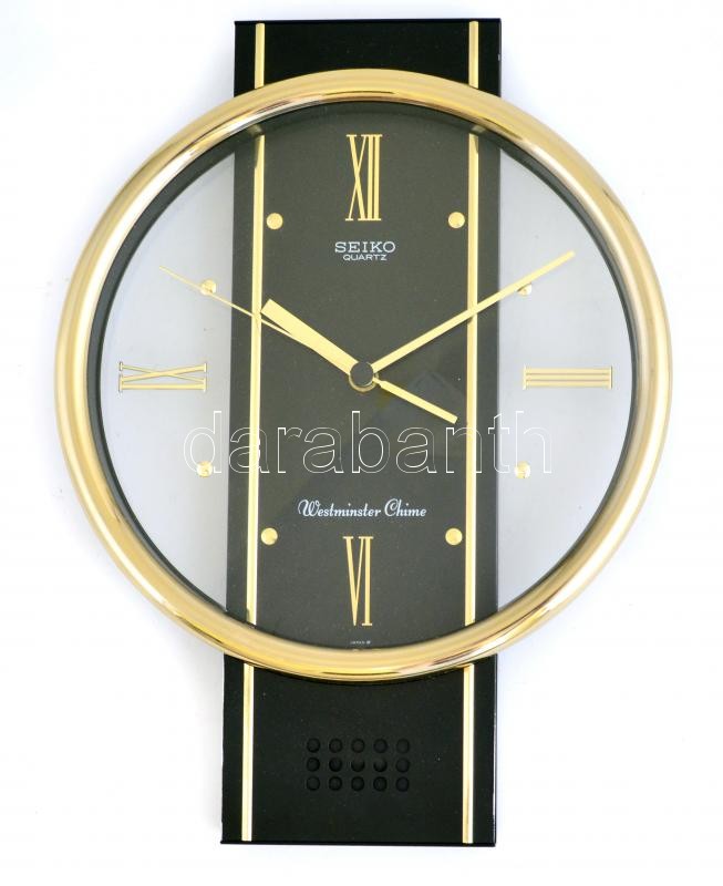 Seiko Westminster Chime zenélő fali quartz óra, működik, egy elemmel. ... https://www.darabanth.com/de/405-Fernauktion/405.0/Kunst-Dokumente-andere-Sammelgebiete/Uhren~10/Seiko-Westminster-Chime-zenelo-fali-quartz-ora-mukodik-egy-elemmel-d-26-m-35-cm~II2497866