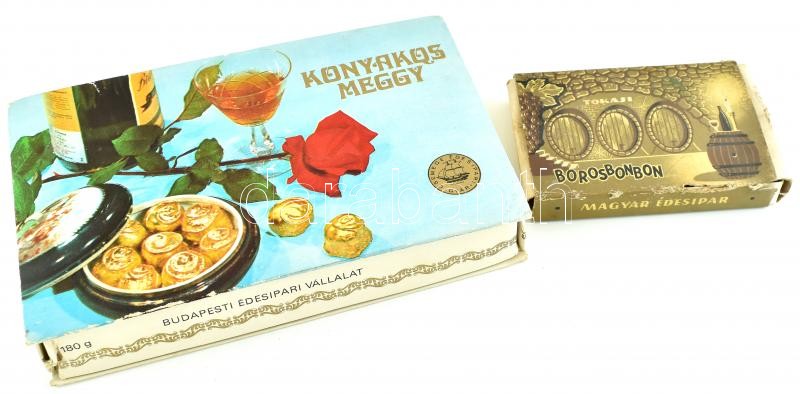 2 db retró csokis doboz (Konyakos meggy, Tokaji boros bonbon) https://www.darabanth.com/de/405-Fernauktion/405.0/Kunst-Dokumente-andere-Sammelgebiete/Werbungen~22/2-db-retro-csokis-doboz-Konyakos-meggy-Tokaji-boros-bonbon~II2504219