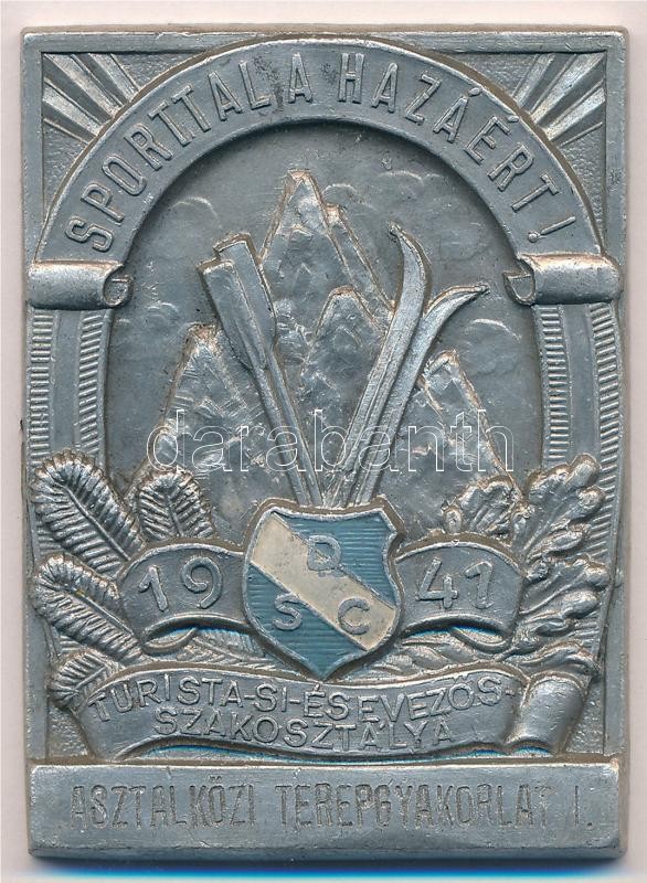 1941. "Sporttal a Hazáért! - 1941. DSC - Turista Sí és Evezős Sza... https://www.darabanth.com/de/405-Fernauktion/405.0/Numismatik/Sportpreise-und-Sportgedenkmedaillen~1500010/1941-Sporttal-a-Hazaert-1941-DSC-Turista-Si-es-Evezos-Szakosztalya-Asztalkozi-terep~II2501900