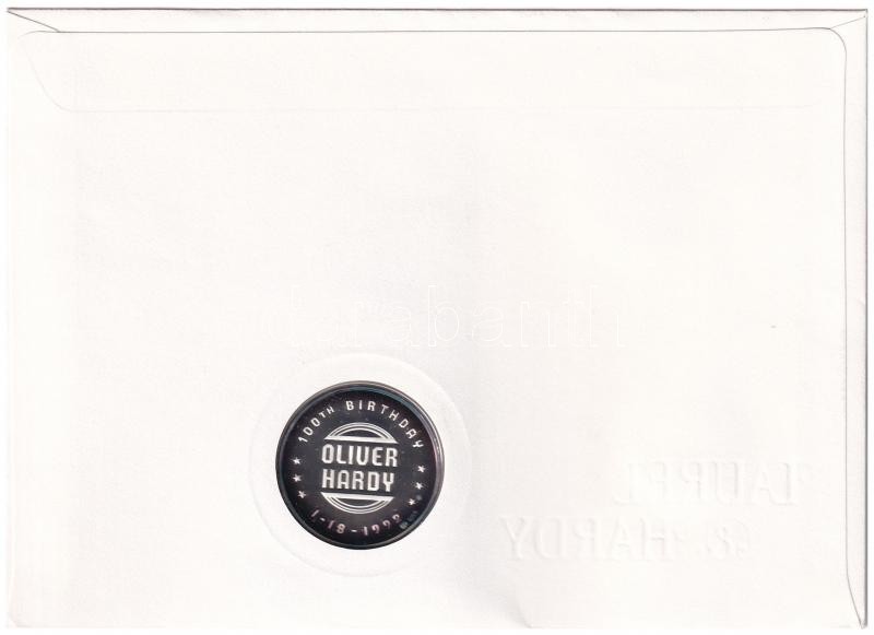 Svájc 1992. "Laurel és Hardy" jelzett Ag emlékérem érmés borítékban, amerikai bélyeggel, bélyegzéssel (0.999) T:PP patina Switzerland 1992. "Laurel and Hardy" hallmarked Ag commemorative medallion in envelope with American stamp and cancellation (0.999) C:PP patina