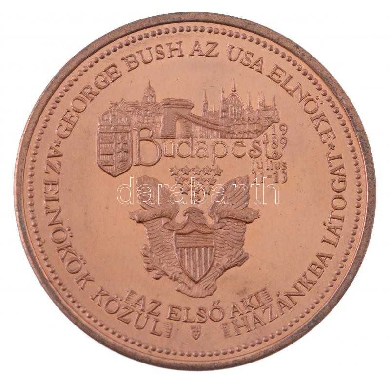 Bozó Gyula (1913-2004) 1989. "George Bush látogatása Magyarországon" Br emlékérem (42,5mm) T:1- (eredetileg PP) kis kopás