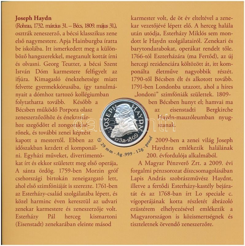 Beschreibung: 2009. 5Ft-200Ft "Haydn" (6xklf) forgalmi sor szettben + "Joseph Haydn" Ag emlékérem (12g/0.999/29mm) T:PP patina Adamo FO43.4