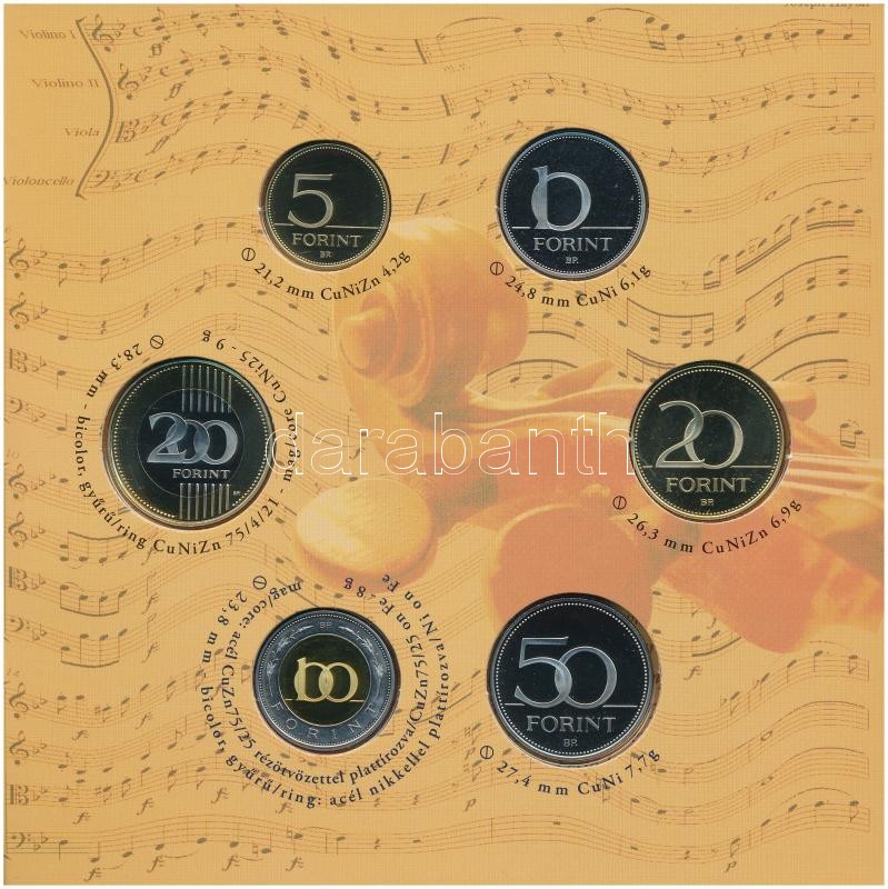 2009. 5Ft-200Ft "Haydn" (6xklf) forgalmi sor szettben + &quo... https://www.darabanth.com/de/405-Fernauktion/405.0/Numismatik/Ungarische-Munzen-und-Munzen-mit-ungarischem-Munzzeichen~1500008/2009-5Ft-200Ft-Haydn-6xklf-forgalmi-sor-szettben-plus-Joseph-Haydn-Ag-emlekerem-12g099929m~II2504924