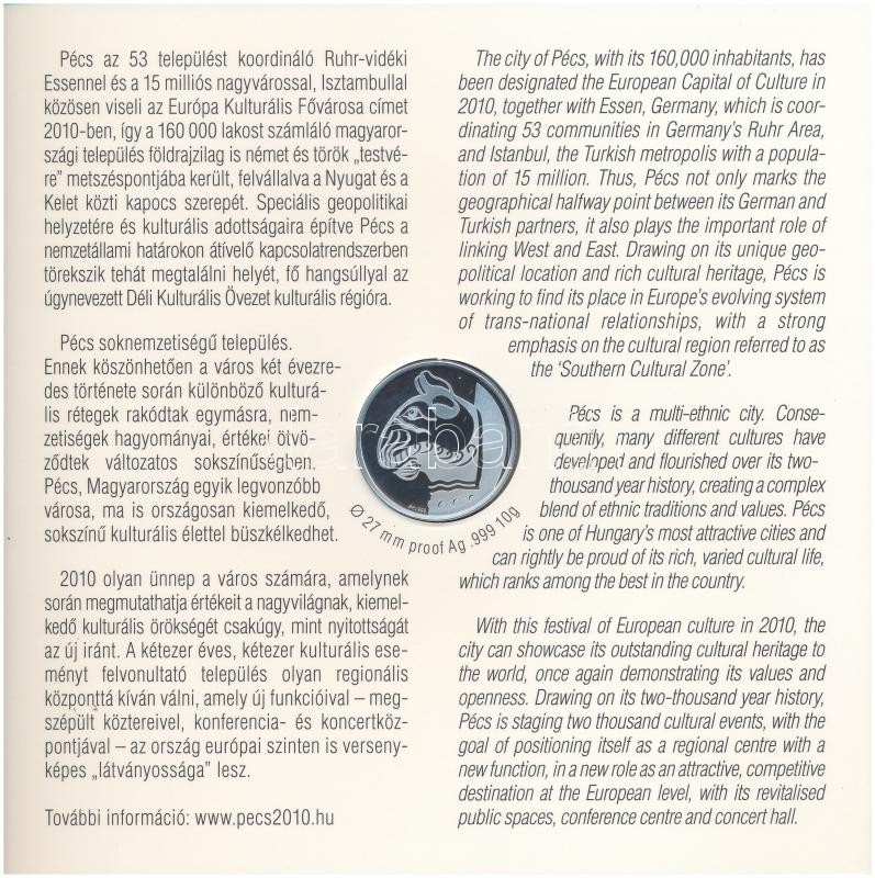 2010. 5Ft-200Ft (6xklf) forgalmi sor dísztokban, valamint 2010. "Pécs 2010 - Európa Kulturális Fővárosa" Ag emlékérem (10g/0.999/27mm), "Magyarország pénzérméi" sorozat T:BU