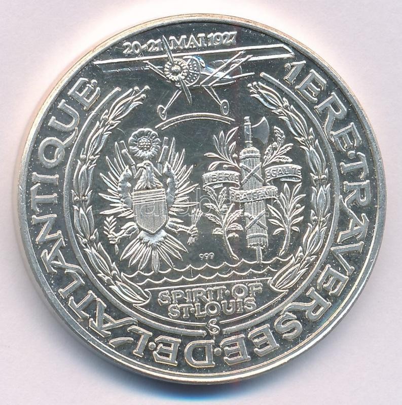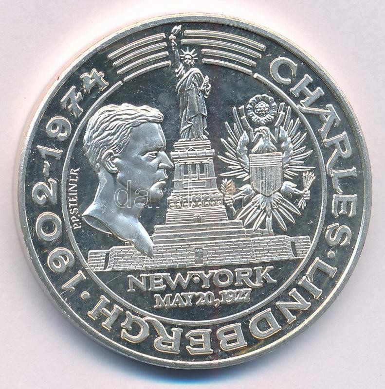 Amerikai Egyesült Államok / Franciaország 1974. "Charles Lindbergh 1902-1974 - New York 20 Mai 1927 / 1ere Traverse de l'Atlantique 20-21 Mai 1927." kétoldalas jelzett Ag emlékérem (34,55g/0.999/40mm) T:1 (eredetileg PP)