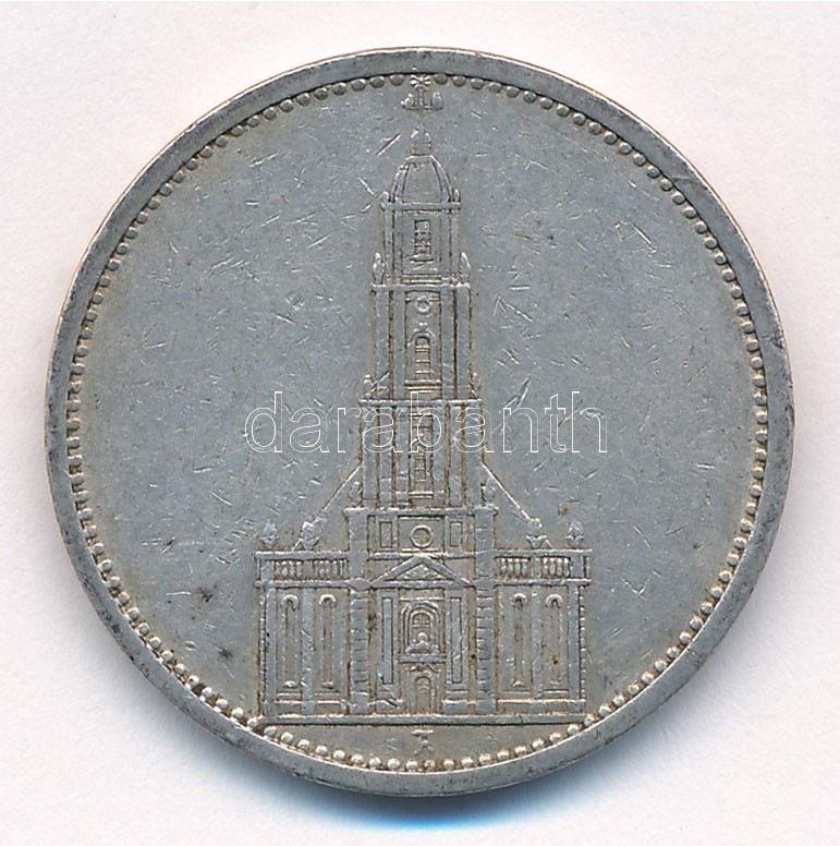 German Third Reich 1934A 5 Marks Ag "1st Anniversary of Nazi rule" C:VF edge error