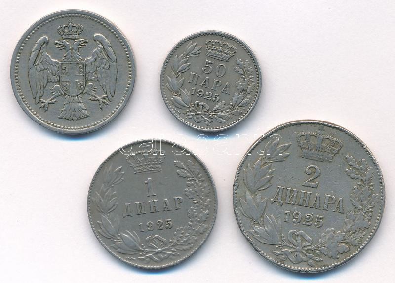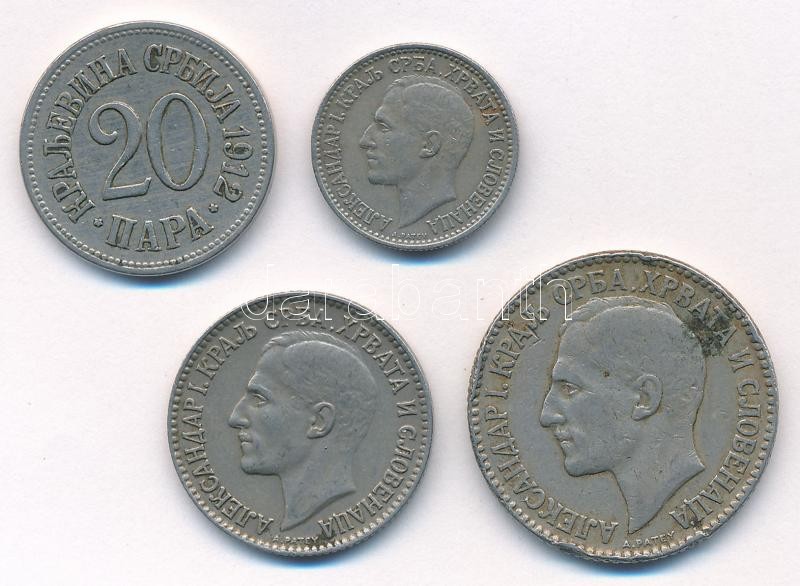 Szerbia 1912. 20p Cu-Ni + 1925. 50p Cu-Ni + 1D Ni-sárgaréz "I. Sándor" + 2D Ni-sárgaréz "I. Sándor" T:2,2- egyiken több ph. Serbia 1912. 20 Para Cu-Ni + 1925. 50 Para Cu-Ni + 1 Dinar Ni-Brass "Alexander I" + 2 Dinara Ni-Brass "Alexander I" C:XF,VF one with multiple edge errors