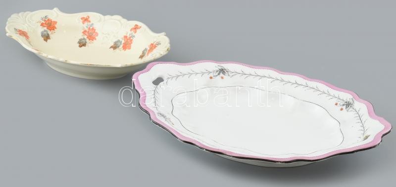 Beschreibung: 2 db porcelán kínáló tál. XX sz. eleje cseh jelzés nélkül 42x22 cm + jelzett csehszlovák. Részben kézzel festett, kis kopásokkal