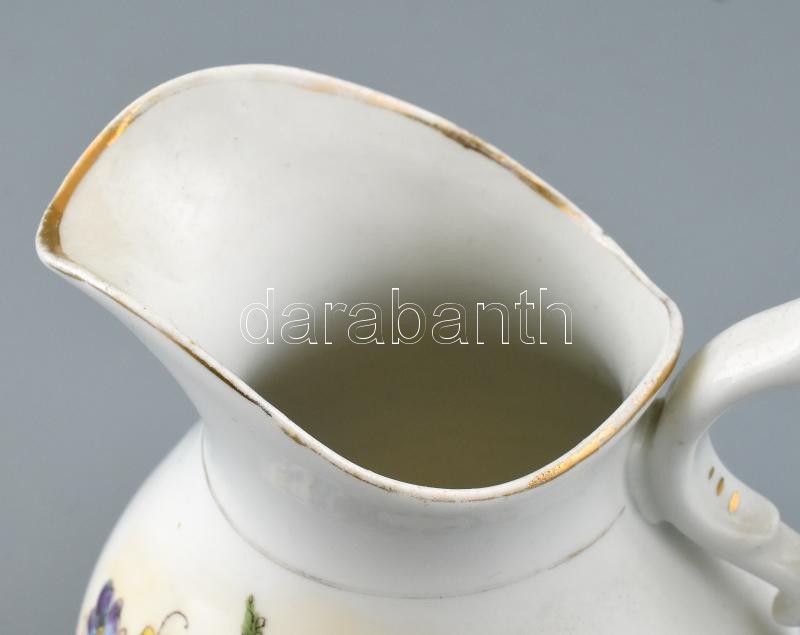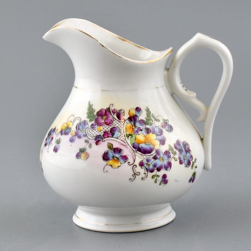Cseh matricás tejes kiöntő. Matricás, jelzés nélkül, kopott. m: 14 cm https://www.darabanth.com/de/405-Fernauktion/405.0/Porzellan-Keramik-Glass/Porzellan~6/Cseh-matricas-tejes-kionto-Matricas-jelzes-nelkul-kopott-m-14-cm~II2504046