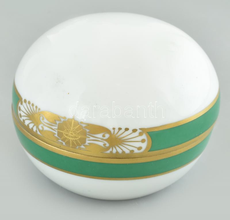 Herendi zöld mintás porcelán bonbonniere. Kézzel festett, jelzett, hib... https://www.darabanth.com/de/405-Fernauktion/405.0/Porzellan-Keramik-Glass/Porzellan~6/Herendi-zold-mintas-porcelan-bonbonniere-Kezzel-festett-jelzett-hibatlan-d-7-cm~II2497642