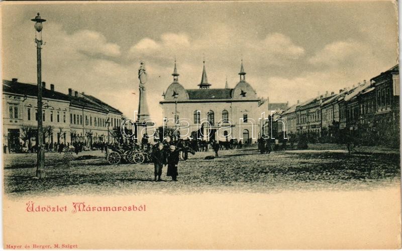 Beschreibung: Máramarossziget, Sighetu Marmatiei; Fő tér, Városi vigadó, piac. Mayer és Berger kiadása / main square, redoute, market (EK)