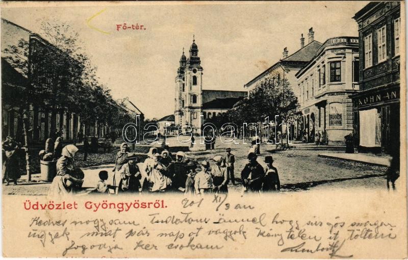 1901 Gyöngyös, Fő tér, piac, Brukner sörcsarnok a komlóhoz, Kohn üzlet... https://www.darabanth.com/de/406-Fernauktion/406.0/Ansichtskarten/Ungarn~1500005/1901-Gyongyos-Fo-ter-piac-Brukner-sorcsarnok-a-komlohoz-Kohn-uzlete~II2509253
