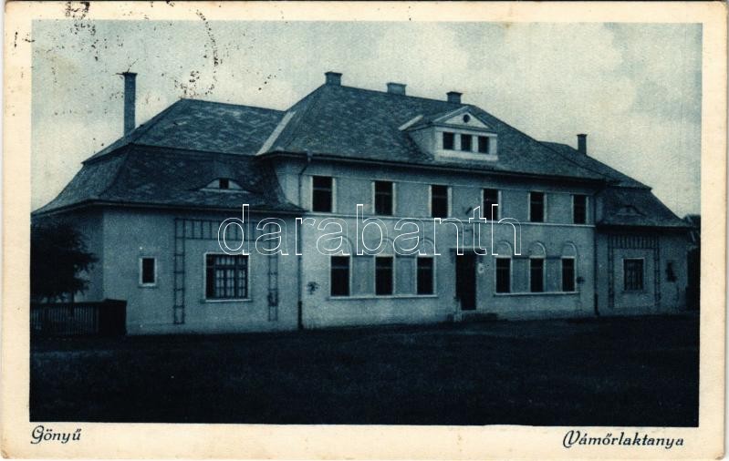 1937 Gönyű, Vámőrlaktanya. Hangya szövetkezet kiadása https://www.darabanth.com/de/406-Fernauktion/406.0/Ansichtskarten/Ungarn~1500005/1937-Gonyu-Vamorlaktanya-Hangya-szovetkezet-kiadasa~II2499733