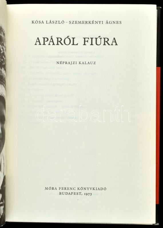 Kósa László - Szemerkényi Ágnes: Apáról fiúra. Néprajzi kalauz. Bp, 1973, Móra. Sáros András Miklós rajzaival és fekete-fehér fotókkal illusztrálva. Kiadói egészvászon kötésben, kissé papír védőborítóban.