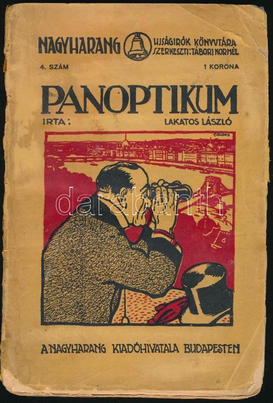 Lakatos László: Panoptikum. Nagyharang Ujságirók Könyvtára 4. sz. Bp., (1912), Nagyharang, 126+2 p. Kiadói illusztrált papírkötés, sérült, kissé hiányos borítóval és gerinccel, helyenként kissé sérült lapszélekkel, néhány felvágatlan lappal.