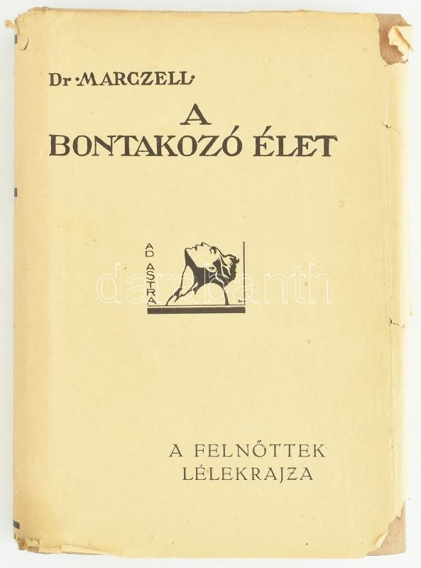 Marczell Mihály: A felnőttek lélekrajza. A bontakozó élet V. Bp., 1934., "Élet". Kiadói aranyozott egészvászon-kötés, kiadói szakadt papír védőborítóban, kissé foltos borítóval.