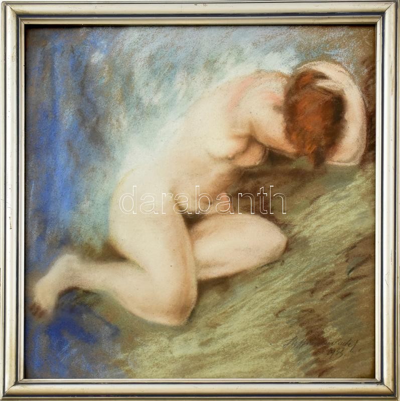 Beschreibung: Hoffmann Antal (1895 - ): Női akt, 1933. Pasztell, papír. Jelzett. Üvegezett fa keretben, 40,5x39 cm