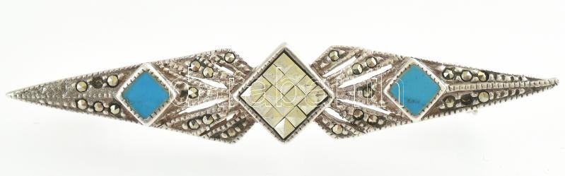 Beschreibung: Ezüst (Ag): Bross markazittal és türkizzel ékítve. Jelzett. bruttó: 6,6g, 6 cm