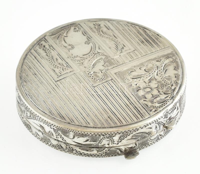 Ezüst (Ag) gyógyszeres doboz. Jelzett. d: 47 mm 18,4 g https://www.darabanth.com/de/406-Fernauktion/406.0/Juwelen/Juwelen~1000001/Ezust-Ag-gyogyszeres-doboz-Jelzett-d-47-mm-18-4-g~II2512036