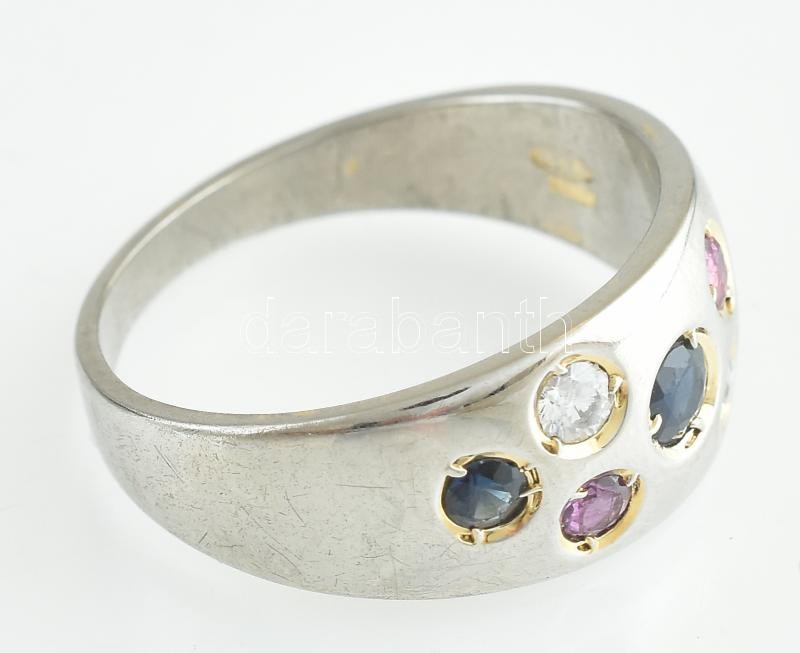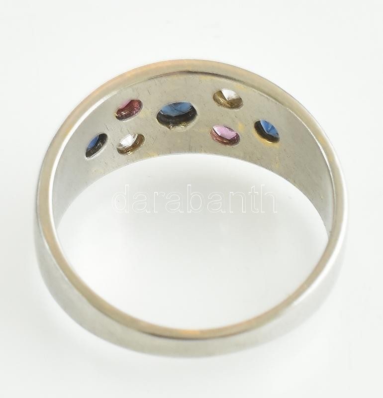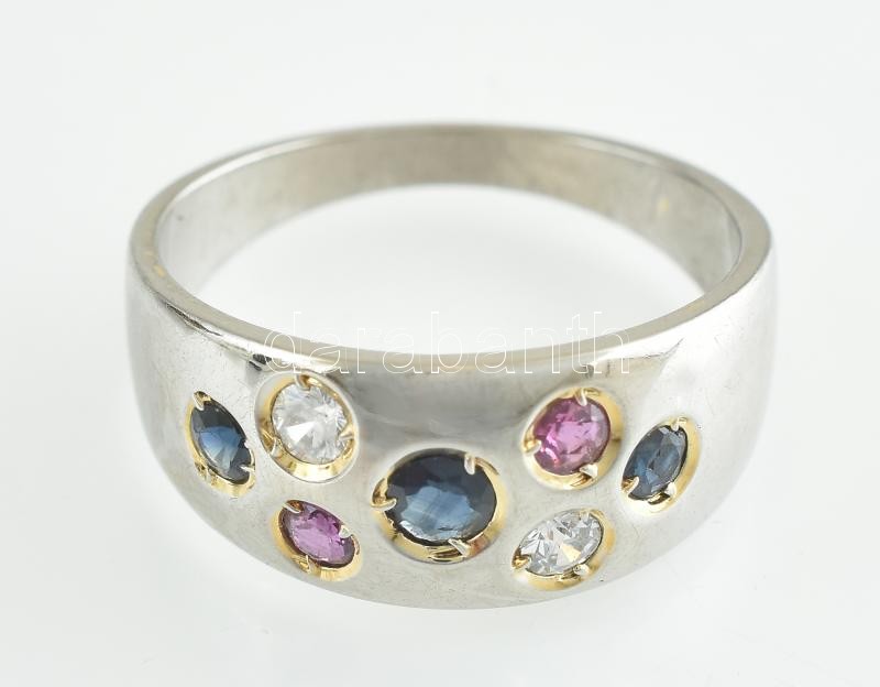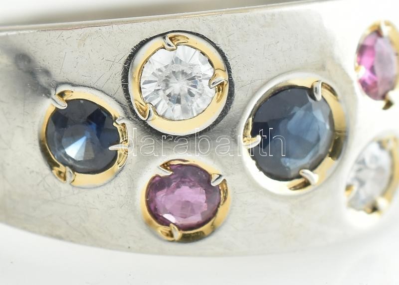 Beschreibung: Ezüst(Ag) gyűrű, rubin, zafír, stb. kövekkel, jelzett, méret: 56, bruttó: 4,06 g
