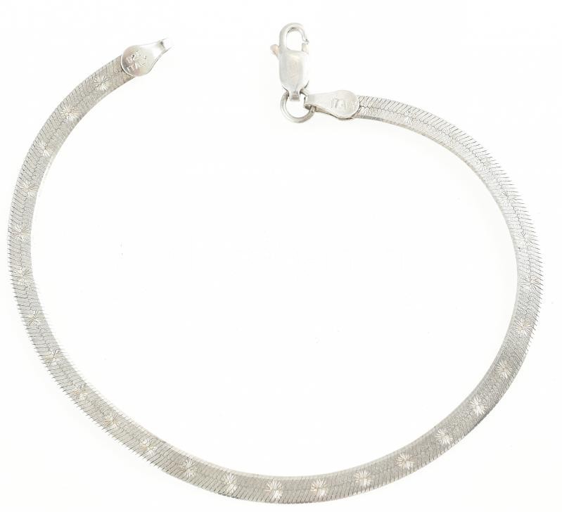 Ezüst(Ag) lapos kígyó karkötő csillag mintával, jelzett, h: 18 cm, net... https://www.darabanth.com/de/406-Fernauktion/406.0/Juwelen/Juwelen~1000001/EzustAg-lapos-kigyo-karkoto-csillag-mintaval-jelzett-h-18-cm-netto-2-9-g~II2508659