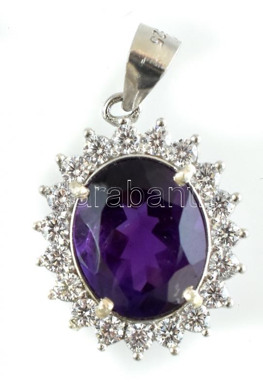 Ezüst(Ag) medál, ametiszttel, jelzett, h: 2,5 cm, bruttó: 2,8 g https://www.darabanth.com/de/406-Fernauktion/406.0/Juwelen/Juwelen~1000001/EzustAg-medal-ametiszttel-jelzett-h-2-5-cm-brutto-2-8-g~II2507190