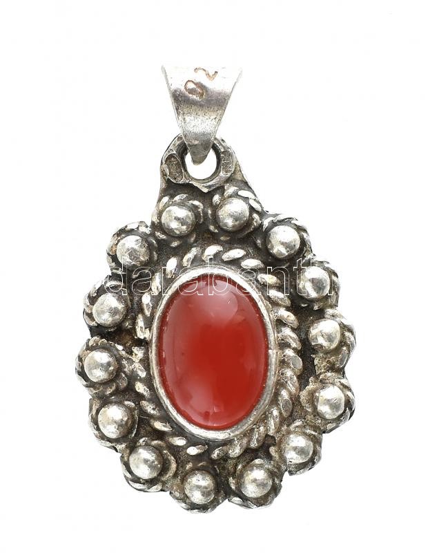 Beschreibung: Ezüst(Ag) medál karneollal, jelzett, 2×1,5 cm, bruttó: 2,6 g