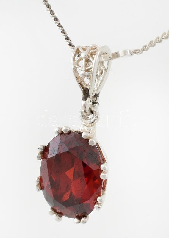 Beschreibung: Ezüst(Ag) nyaklánc piros köves függővel, jelzett, h: 36 cm, bruttó: 5,5 g
