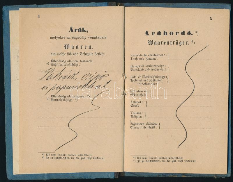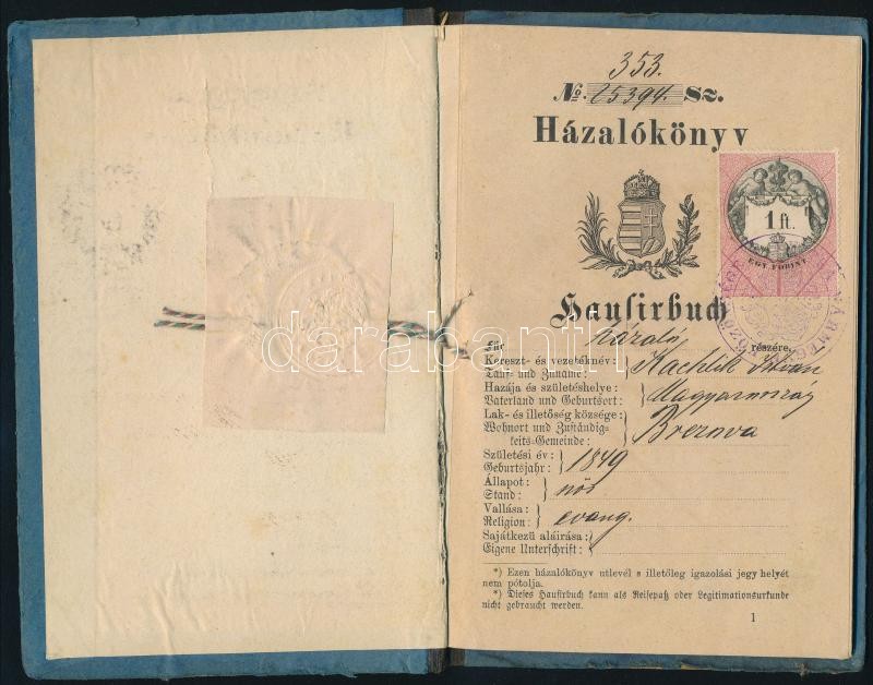 1887 Házalókönyv pokróc, cipő és papucs árusítására, okmánybélyeggel, ... https://www.darabanth.com/de/406-Fernauktion/406.0/Kunst-Dokumente-andere-Sammelgebiete/Dokument~500018/1887-Hazalokonyv-pokroc-cipo-es-papucs-arusitasara-okmanybelyeggel-pecsetekkel~II2510262