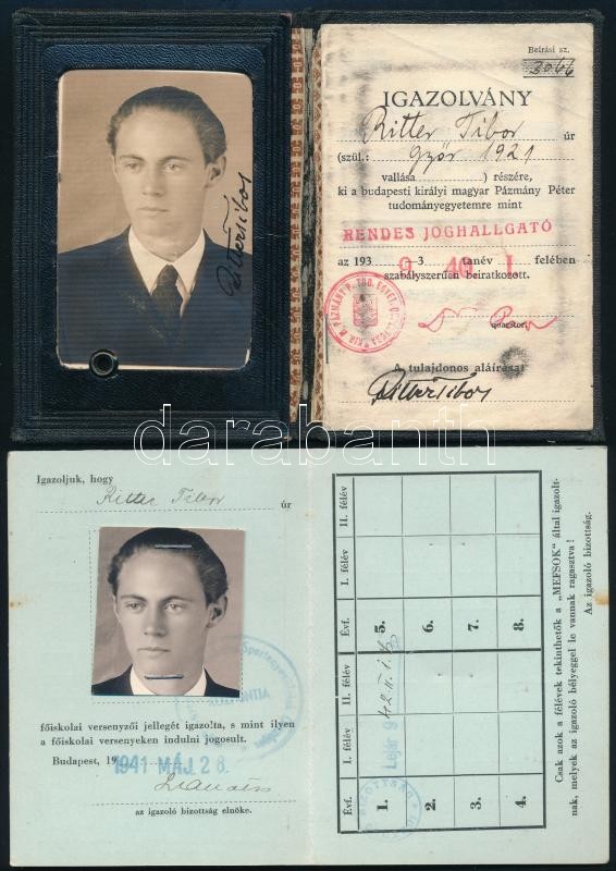 1939-1942 Kir. M. Pázmány Péter Egyetem által kiállított fényképes diá... https://www.darabanth.com/de/406-Fernauktion/406.0/Kunst-Dokumente-andere-Sammelgebiete/Dokument~500018/1939-1942-Kir-M-Pazmany-Peter-Egyetem-altal-kiallitott-fenykepes-diakigazolvany-plus-MEFSOK~II2510179
