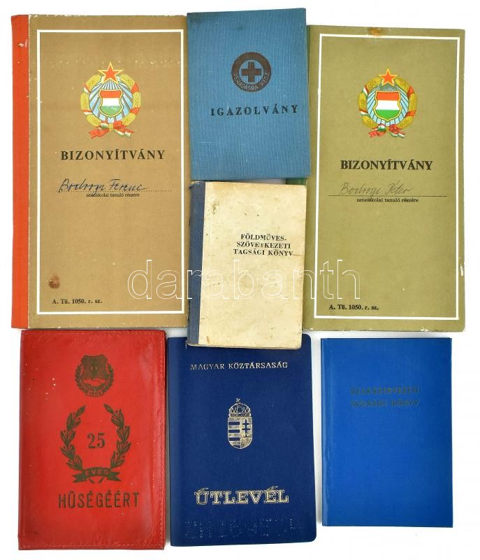 Beschreibung: 7 db vegyes igazolvány, okmány, közte Magyar Köztársaság által kiállított útlevél